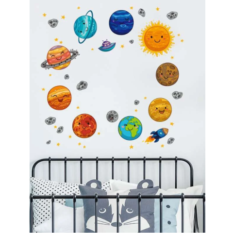 Varázslatos bolygókat, Napot, naprendszert ábrázoló falmatrica gyerekszobába, mely mesés hangulatot teremt a kicsik szobájába.