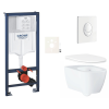 Falra szerelhető WC szett - a készlet a következőket tartalmazza: könnyű fali modul / fal előtti rögzítés, GROHE WC-tartály, Skate Air vezérlőgomb és WC-ülőke. A WC-ülőke duroplastból készült. A vezérlőgomb műanyagból készült és fehér színű.