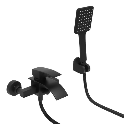 Fali Vízesés Fürdőkeverő Csaptelep Zuhanyfejjel - Modern Fekete Elegancia a Fürdőszobádba 🚿 Ez a stílusos, falra szerelhető fürdőkeverő csaptelep vízesés kifolyóval és zuhanyfejjel tökéletes választás a modern fürdőszobákba. A fekete felület elegáns...