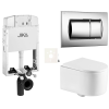 Függő WC-készlet - a készlet a következőket tartalmazza: WC vortex öblítéssel, fali modul, JIKA WC-tartály és WC-ülőke. A WC-ülőke duroplastból készült. A vezérlőgomb műanyagból készült, és krómfényű.