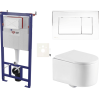 Függő WC-készlet - a készlet a következőket tartalmazza: WC vortex öblítéssel, világító falmodul / válaszfal, SAT WC-tartály, SAT vezérlőgomb és WC-ülőke. A WC-ülőke duroplastból készült. A vezérlőgomb műanyagból készült és krómfényű.