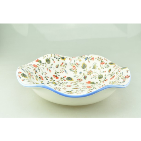 1 kép family dísztál hullámos dolomit piros-kék virágos