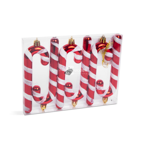 Family Karácsonyfadísz szett - piros / fehér cukorbot - 13 cm - 6 db / szett