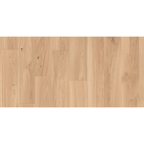Fa 3 rétegű lakkozott padló 180x17,5 cm-es tölgy Pure dekorral a Weitzer Plank 1800 sorozatból. A padlót V-horonnyal csiszolják