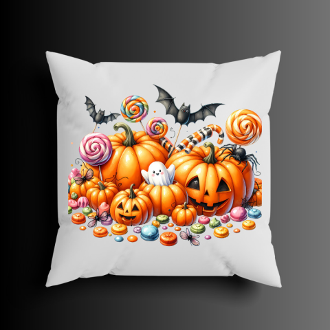 Töklámpás mintás párna Halloweeni, őszi párna töklámpás mintával Mérete: 40*40 cm Párnahuzat anyaga: 100% poliészter Párnabélés anyaga: poliészter töltet Színe: fehér Mérete: 40 x 40 x 15cm