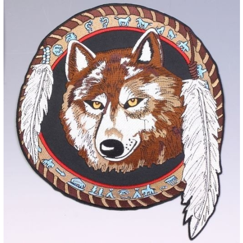 Farkas fej álomfogó felvarró, nagyméretű 22,5 cm átmérőjű Felvasalható.