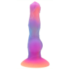 Fedezd fel az éjszaka titkos játékszerét! A Lumy Wolf dildó színes, világító dizájnnal és futurisztikus farkaskontúrral vár rád! 19 cm-es különleges formájával és változó szélességével a felfedezés igazi kalandját kínálja. Puha szilikonból készült, erős v
