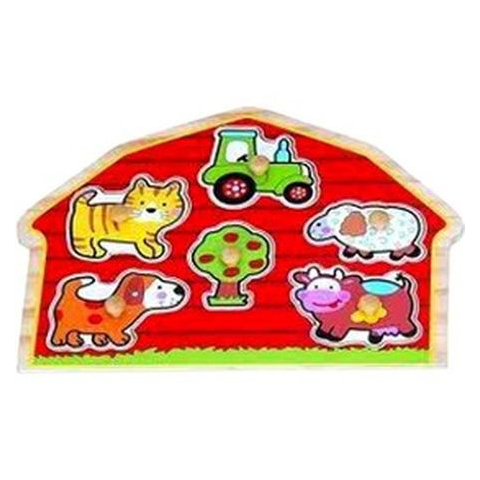 Tedd a helyükre az állatokat, a traktort és a fát! A Farm 6 darabos fa puzzle egy tanyasi gazdaságban élő állatokat, cicát, kutyát, bárányt és bocit, valamint egy traktort és egy almafát ábrázol. A mozaikdarabokat a keretbe kell beilleszteni, és miközben a pici megismerkedik az állatokkal, a finommotoros mozgása és a formafelismerő képessége is fejlődik. A Farm 6 darabos fa puzzle méretei: 30 x 22 x 2 cm.