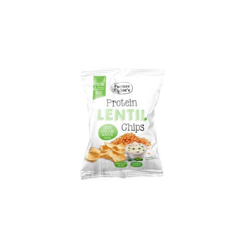 Farmer Joe fehérjében gazdag lencse chips tejföllel és hagymával ropogós, több fehérjét és kevesebb zsírt tartalmaz. Fehérjében gazdag lencse snack több mint 15% fehérjével 50%-kal kevesebb zsírt tartalmaz, mint a hagyományos snackek Vegán