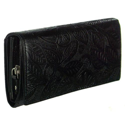 1 kép Fedeles, nyomott levélmintás fekete női bőr pénztárca Farkas