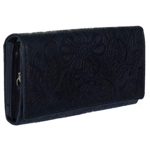 1 kép Fedeles, nyomott virágmintás kék női bőr pénztárca Farkas