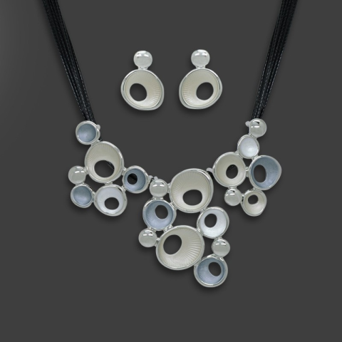 Egyedi Görög divatékszer szett, antiallergén fémből. A zsinór állítható 40-50 cm Medál 75 x 40 mm, fülbevaló 10 x 18 mm.