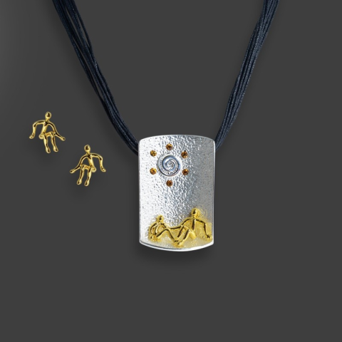 Egyedi Görög divatékszer szett, antiallergén fémből. A zsinór állítható 40-50 cm Medál 25 x 45 mm, fülbevaló 15 x 15 mm.