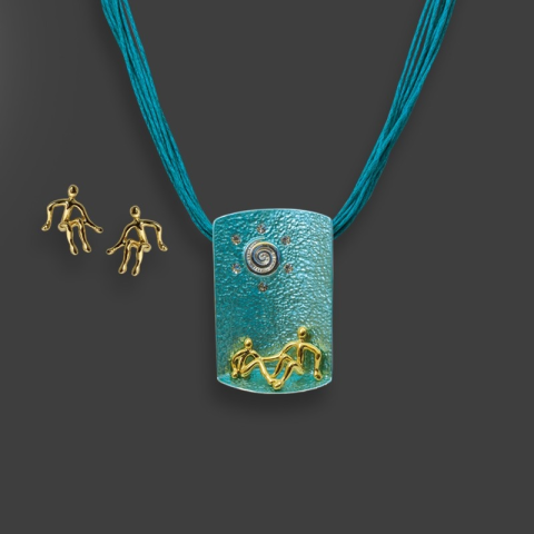 Egyedi Görög divatékszer szett, antiallergén fémből. A zsinór állítható 40-50 cm Medál 25 x 45 mm, fülbevaló 15 x 15 mm.