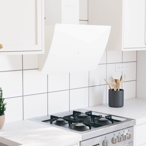 1 kép Fehér acél és edzett üveg fali páraelszívó 60 cm