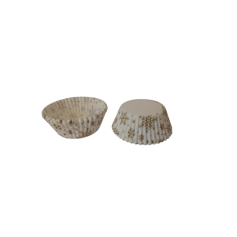 Fehér alapon arany hópehely mintás karácsonyi muffin papír 100 db
