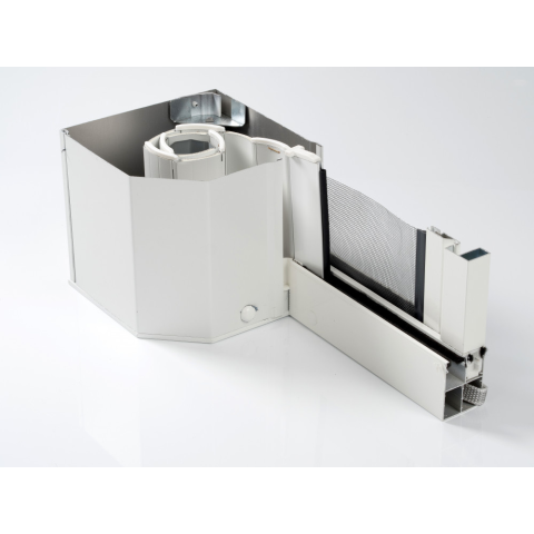 Fehér alumínium redőny,SZÚNYOGHÁLÓVAL KOMBINÁLVA. Ennél a típusnál a tok,a lefutósín,redőnylécek alumíniumból készülnek,így strapabíróbbak a műanyagnál. Nagyszerű hőszigetelési képességgel rendelkezik,köszönhetően a szigetelőhabbal kitöltött redőnyléce