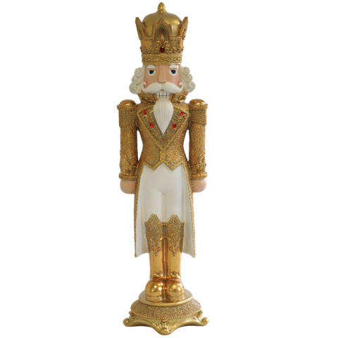 Elegáns, arany színű Diótörő figura - 92 cm-es karácsonyi dekoráció 👑 Varázsoljon ünnepi hangulatot otthonába ezzel a tekintélyt parancsoló, fehér és arany színű diótörő figurával! Tökéletes választás karácsonyi dekorációként, mely eleganciát és kifi...