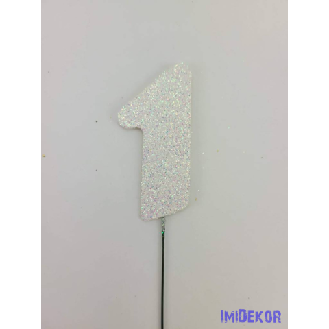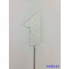 Fehér csillámos szám drót pálcán - 1