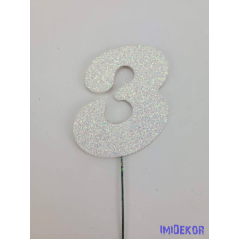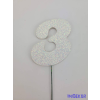 Fehér csillámos szám drót pálcán - 3 dekorációs kellék 1 kép