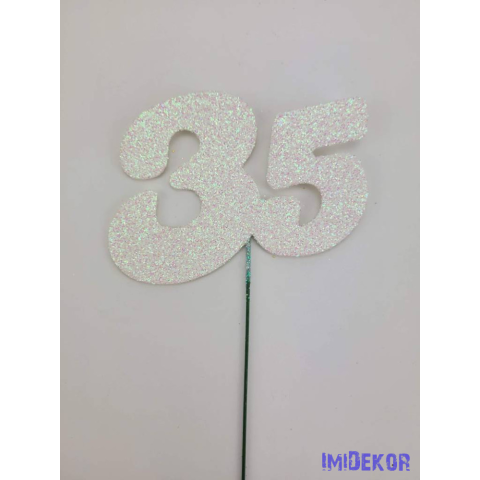 Fehér csillámos szám drót pálcán - 35 dekorációs kellék 1 kép