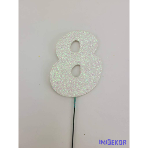 Fehér csillámos szám drót pálcán - 8