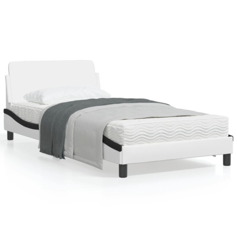 1 kép Fehér és fekete műbőr ágykeret fejtámlával 100x200 cm