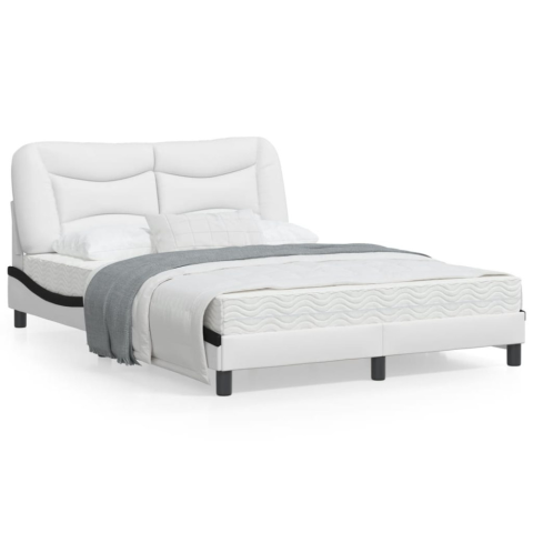 1 kép fehér és fekete műbőr ágykeret LED-világítással 140 x 200 cm