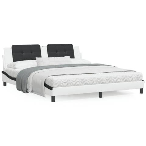 1 kép fehér és fekete műbőr ágykeret LED-világítással 180 x 200 cm