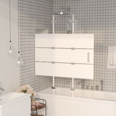 Színe: átlátszó és fehérAnyaga: ESG (egyrétegű biztonsági üveg) fehér csíkos mintával, alumíniumMérete: 100 x 140 cm (Szé x Ma)Üveg vastagsága: 4 mmFogantyúÖsszeszerelést igényel: igen