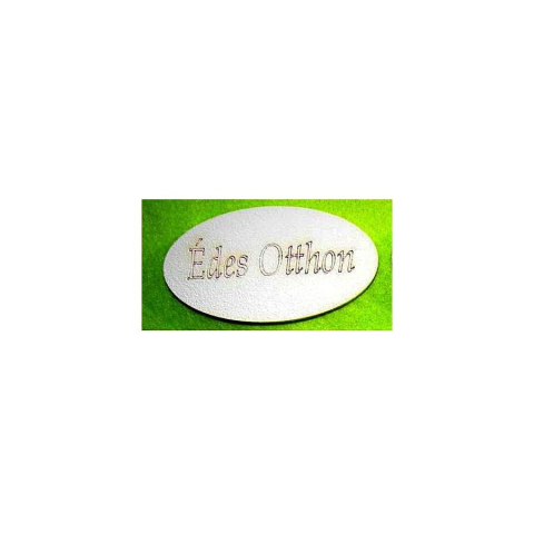 Fehér fa ovális táblácska »Édes otthon« felirattal. Mérete: 75x40 mm