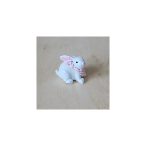 Fehér fekvő polyresin nyuszi, nyakkendős. Mérete: 23 mm