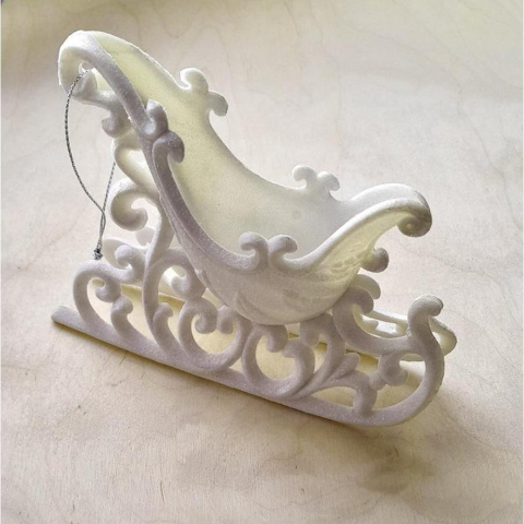 Fehér glitteres szánkó, akasztható. Mérete: 135x105 mm karácsonyfadísz 1 kép