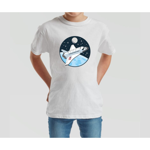 Fehér gyerek űrhajós rövid ujjú póló - 9-11 éves (140 cm)