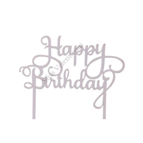 1 kép Fehér Happy Birthday felirat tortadísz sziluett