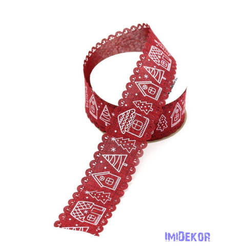 Fehér karácsonyi mintás textil szalag 40mm x 9,144m - Bordó