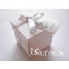 Hagyományos köszönetajándék fehér díszdobozban, fehér szalaggal és ajándékkísérő cédulával díszítve. A dobozkába 3 szem cukrozott mandulát rejtettünk, amelyek az ifjú pár szerencséjét jelképezik, így szimbolikusan a vendégek is osztozhatnak a fiatalokra v