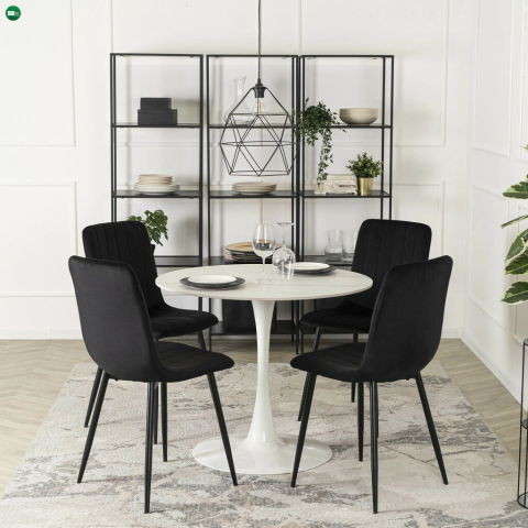 Teljes Fehér Márványhatású Kerek Étkezőasztal. SANDER 90 cm termékleírás