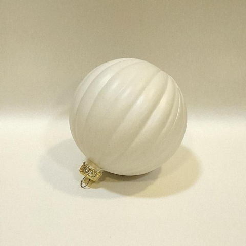 Fehér műanyag csikos gömb, mérete: 11 cm karácsonyfadísz 1 kép