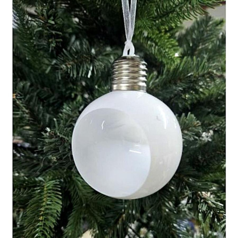 1 kép Fehér műanyag gömb, elől kör alakú nyílással, világítással. Mérete: 9 cm