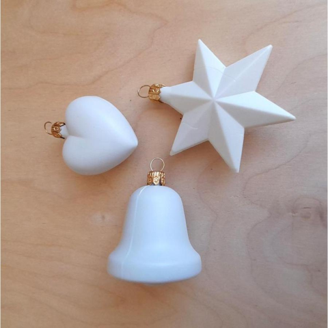A díszek kemény ellenálló fehér műanyagból vannak, fém díszakasztóval, kedvező áron. Könnyen díszíthetők különböző technikákkal: dekupázs, mixed media, festés, antikolás,....
