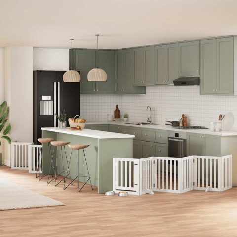 fehér nyárfa 15 paneles összecsukható kutyakapu ajtóval 750 cm kutyafelszerelés 1 kép