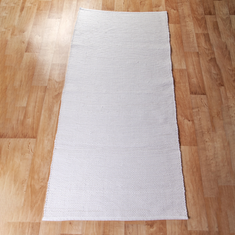 Fehér kézi készítésű rongyszőnyeg 70x150 cm-es méretben, amely kitűnő választás, a ház bármely helyiségéről is legyen szó.
