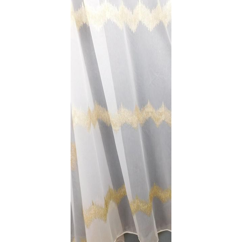 1 kép Fehér sable kész függöny arany mintával 3 sor bordűr 175x290cm