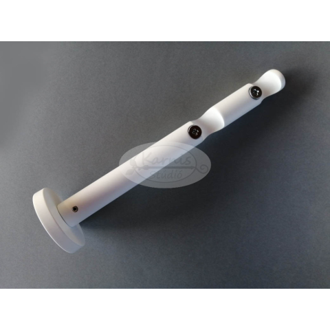 Fehér színű modern stílusú tartó konzol 19 mm-es 2 rudas fém karnishoz. 1 db / csomag Hossza: kb. 20 cm (Eezel a függönyök kb. 13 cm-re és 18,5 cm-re fognak elhelyezkedni a fal síkjától.) A csomag tartalmazza a felszereléshez szükséges csavarokat é