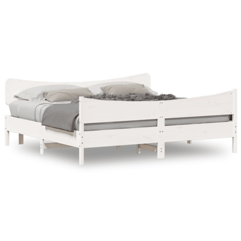 1 kép fehér tömör fenyőfa ágykeret fejtámlával 200 x 200 cm