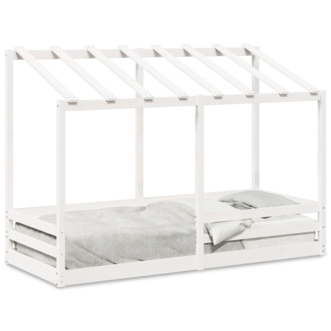fehér tömör fenyőfa gyerekágy tetővel 90 x 190 cm gyermekágy