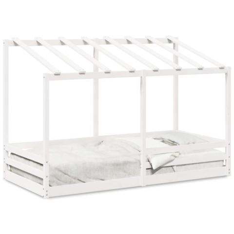 1 kép fehér tömör fenyőfa gyerekágy tetővel 90 x 200 cm