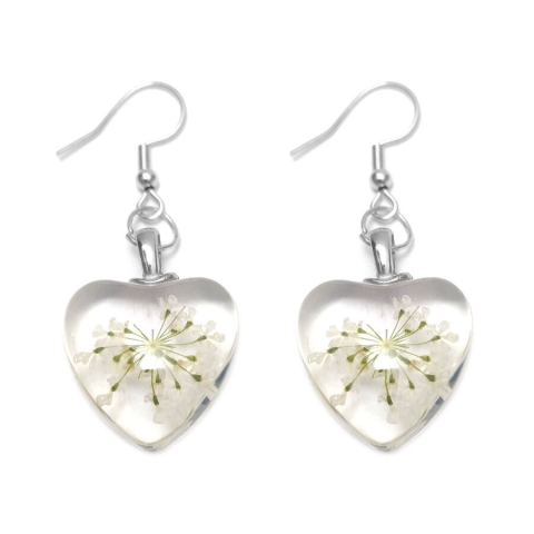 1 kép Fehér virágszív fülbevaló, választható arany vagy ezüst színű akasztóval