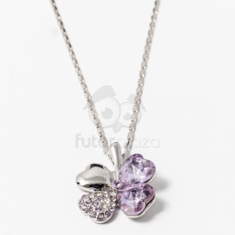 1 kép Fehérarany bevonatos nyaklánc lóhere medálos halványlila jwr-1462